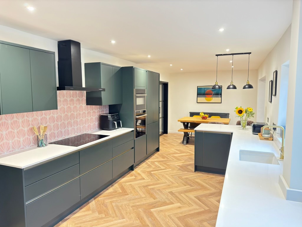 In Winscombe, we recently completed a kitchen knock-through and redesign project, transforming the space into a modern, open-plan kitchen and dining area. Over the course of 3-4 weeks, our team overcame unexpected challenges to deliver a stylish and functional design that met the client’s vision. The result is a bright, open, and social space perfect for both daily living and entertaining, showcasing our ability to adapt and deliver exceptional results.